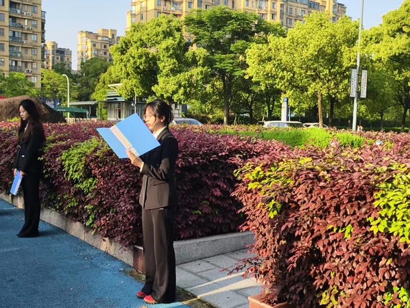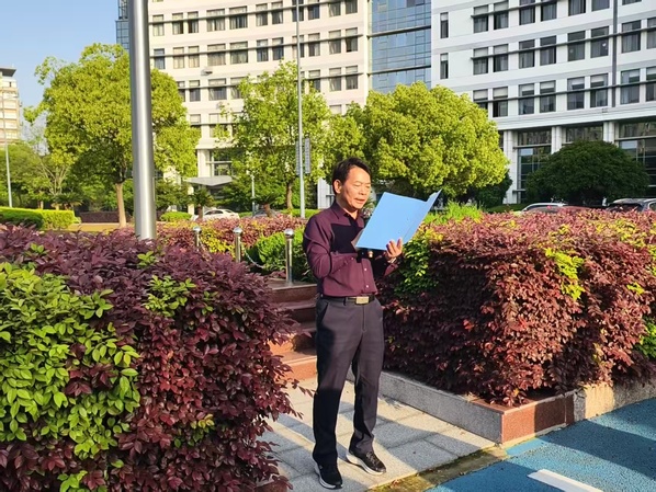 清晨7时整,升旗仪式正式开始。国旗护卫队护送五星红旗入场,全体师生奏唱国歌,行注目礼,现场庄严肃穆。